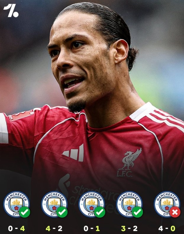 利物浦此前4次足总杯遭遇曼城均晋级,本场4球惨败被淘汰