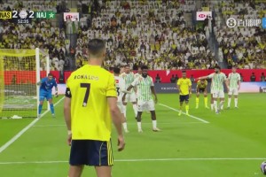 直播吧4月4日讯 北京时间2:00,沙特联第27轮利雅得胜利vs纳杰马体育。上半场,卡多索助攻阿尔-图莱希第44分钟打破僵局,哈姆丹、马内半场补时2分钟2球反超!下半场,卡多索破门完成传射;C罗造点+点射帮助利雅得胜利再次领先!随后纳瓦夫助攻C罗完成双响!马内补时再进一球同样完成双响!最终,利雅得胜利5-2逆转纳杰马体育,各项赛事豪取15连胜!先赛6分领跑。