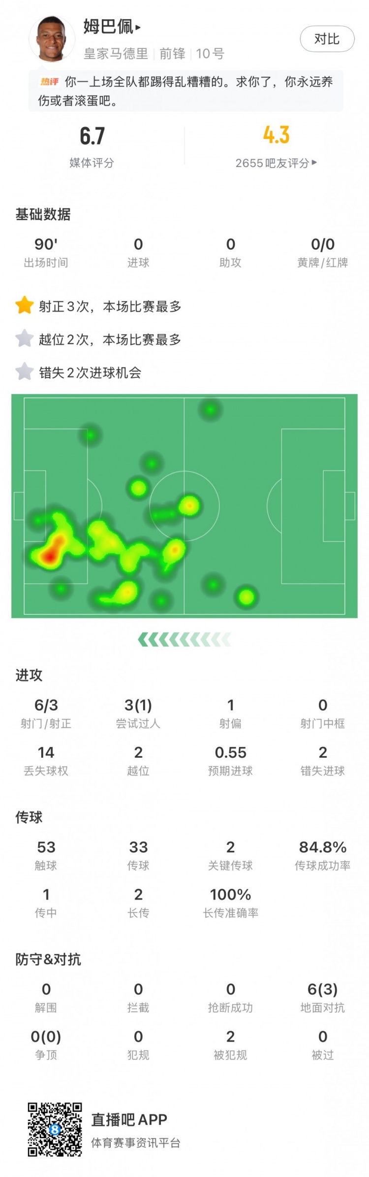 姆巴佩全场数据