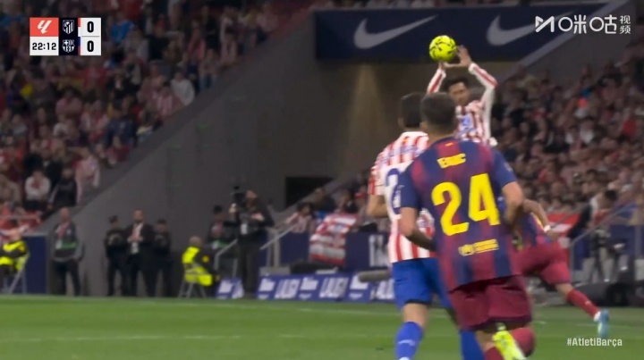 比赛第23分钟,尼古拉斯·冈萨雷斯退防过程中直接跳起来用手拦截了阿劳霍传出的过顶球,被主裁处以黄牌警告。