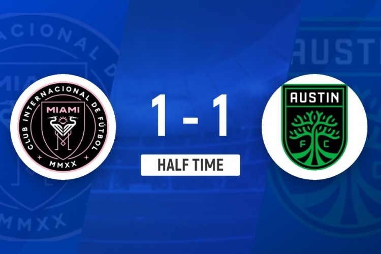 伤停补时3分钟。上半场比赛结束,迈阿密国际1-1奥斯汀FC。