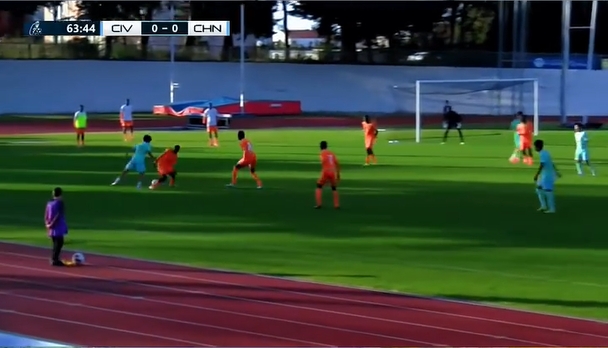 比赛第64分钟,张林峒过人后传中进禁区被科特迪瓦顶出,科特迪瓦球员持球转身,刘凯源突然上抢断球,随后再穿裆过掉一人,再次在禁区左侧送出传中,禁区内无人盯防的张林峒头球攻门被扑出。