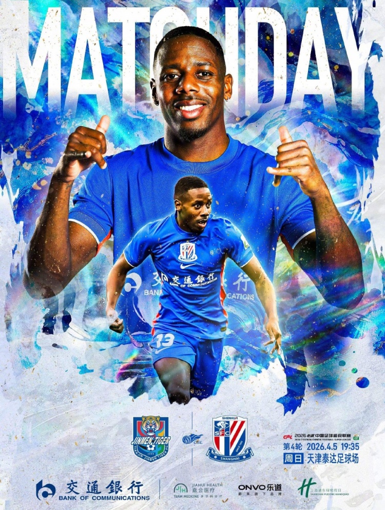 Match Day:中超第4轮,天津津门虎vs上海申花,4月5日19:35