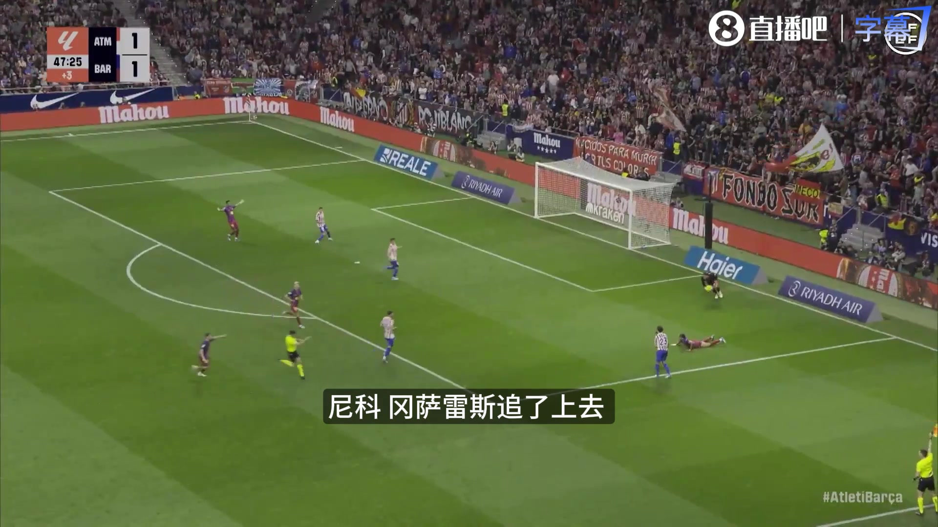 本场比赛上半场补时阶段,尼古拉斯·冈萨雷斯回防时铲倒亚马尔,先是被主裁出示第二张黄牌,随后VAR介入,主裁亲自观看回放后改判为直红。