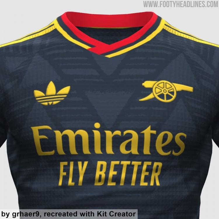 与那款球衣不同的是,阿森纳新赛季客场球衣不再以黄色作为主色调,而是选用了海军蓝,并搭配红、黄两色进行点缀,这是对原配色的反转。与阿迪达斯26-27赛季的客场系列球衣保持一致,在这套球衣上也将使用三叶草logo,为设计增添怀旧感。