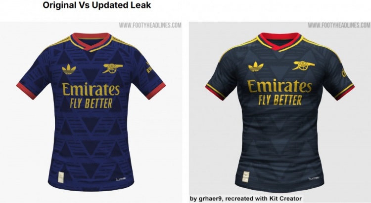 与该网站最初透露的阿森纳新赛季客场球衣不同的是,最新图片中这套球衣的颜色更暗,图案也发生了变化(下图右)。