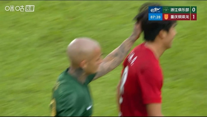 直播吧04月05日讯 中超第4轮,重庆铜梁龙1-0击败浙江,比赛中米特里策两度薅李镇全头发,在第二次拽头发后被主裁红牌罚下。