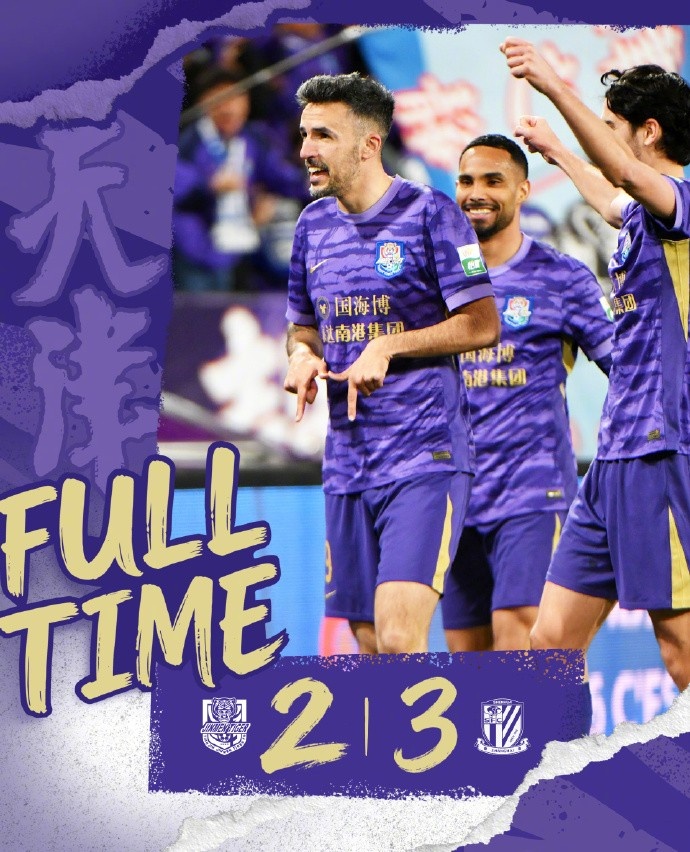 全场比赛结束,津门虎队在主场2:3负于上海申花队