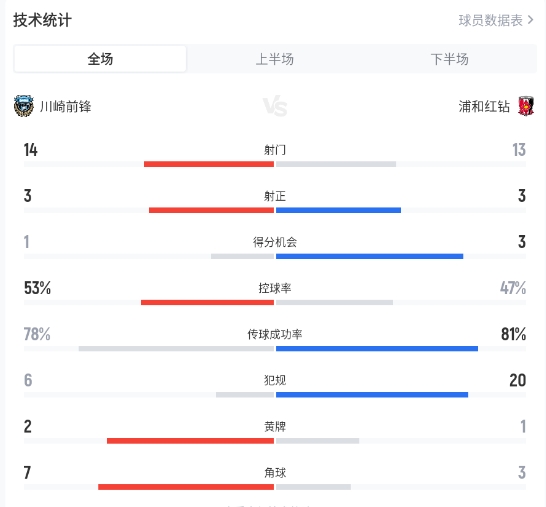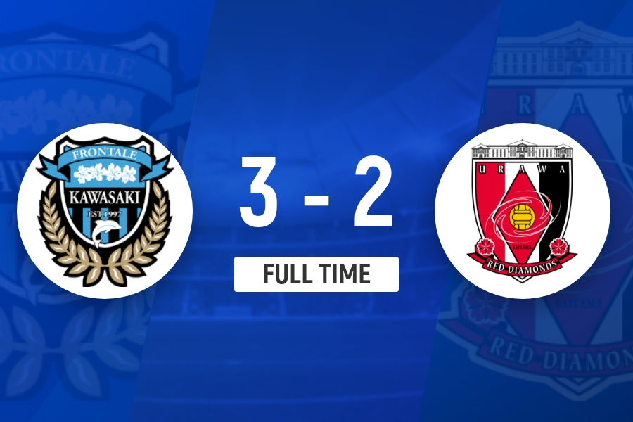 直播吧04月05日讯 J联赛东区第9轮 川崎前锋 - 浦和红钻,上半场比赛第2分钟浦和红钻1-0领先,随后第9分钟川崎前锋凭借对方乌龙球扳平比分1-1;下半场第47分钟浦和红钻77号金子拓郎补射,VAR显示干扰门将进球无效,随后第56分钟还是金子拓郎包抄破门比分来到1-2;第77分钟,川崎前锋角球机会91号罗马尼克包抄破门再次扳平比分2-2,补时第4分钟,川崎前锋 19号河原创绝杀比赛,最终比分定格3-2。