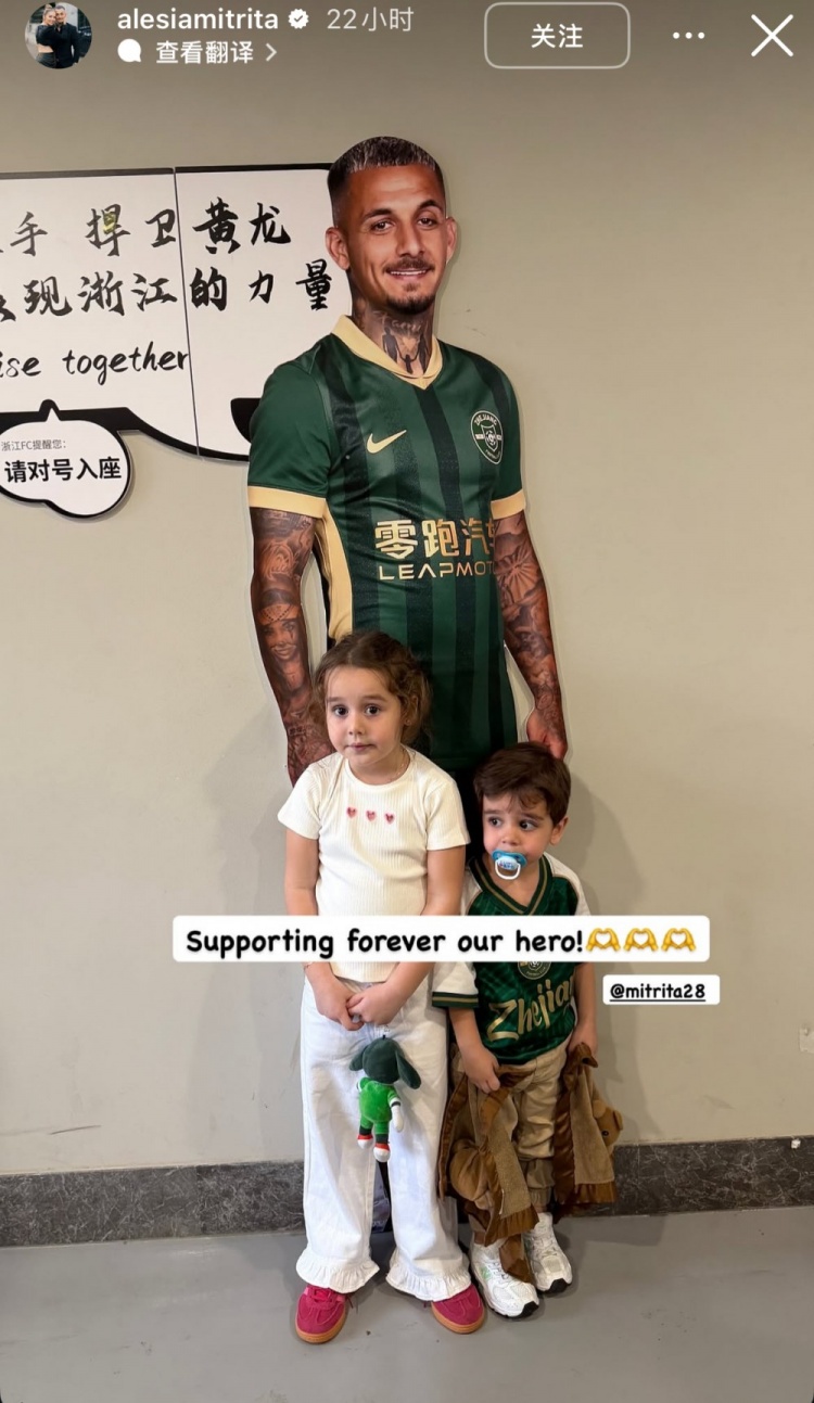 在昨日比赛结束后,米特里策的妻子更新社媒,晒出米特里策和两个孩子的合影,并配文写道:“永远支持我们的英雄!”
