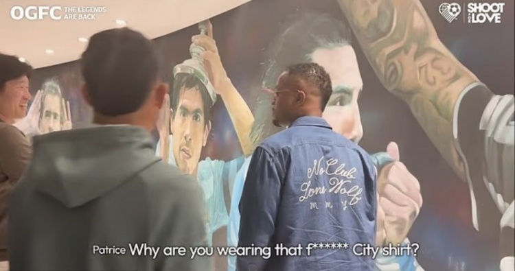 埃弗拉因为特维斯效力过曼城而取笑他,说道:“你为什么要穿那件该死的曼城球衣?”这引起了其他两人的欢笑。