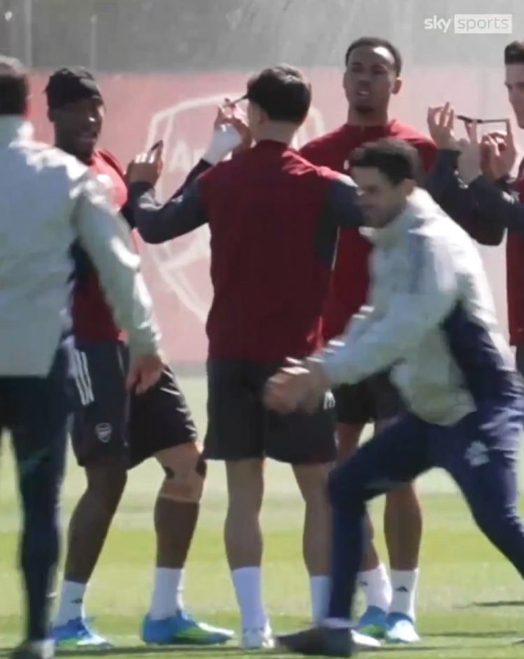 直播吧4月7日讯 据天空体育拍到的镜头,阿森纳今日的训练中整出了新活。