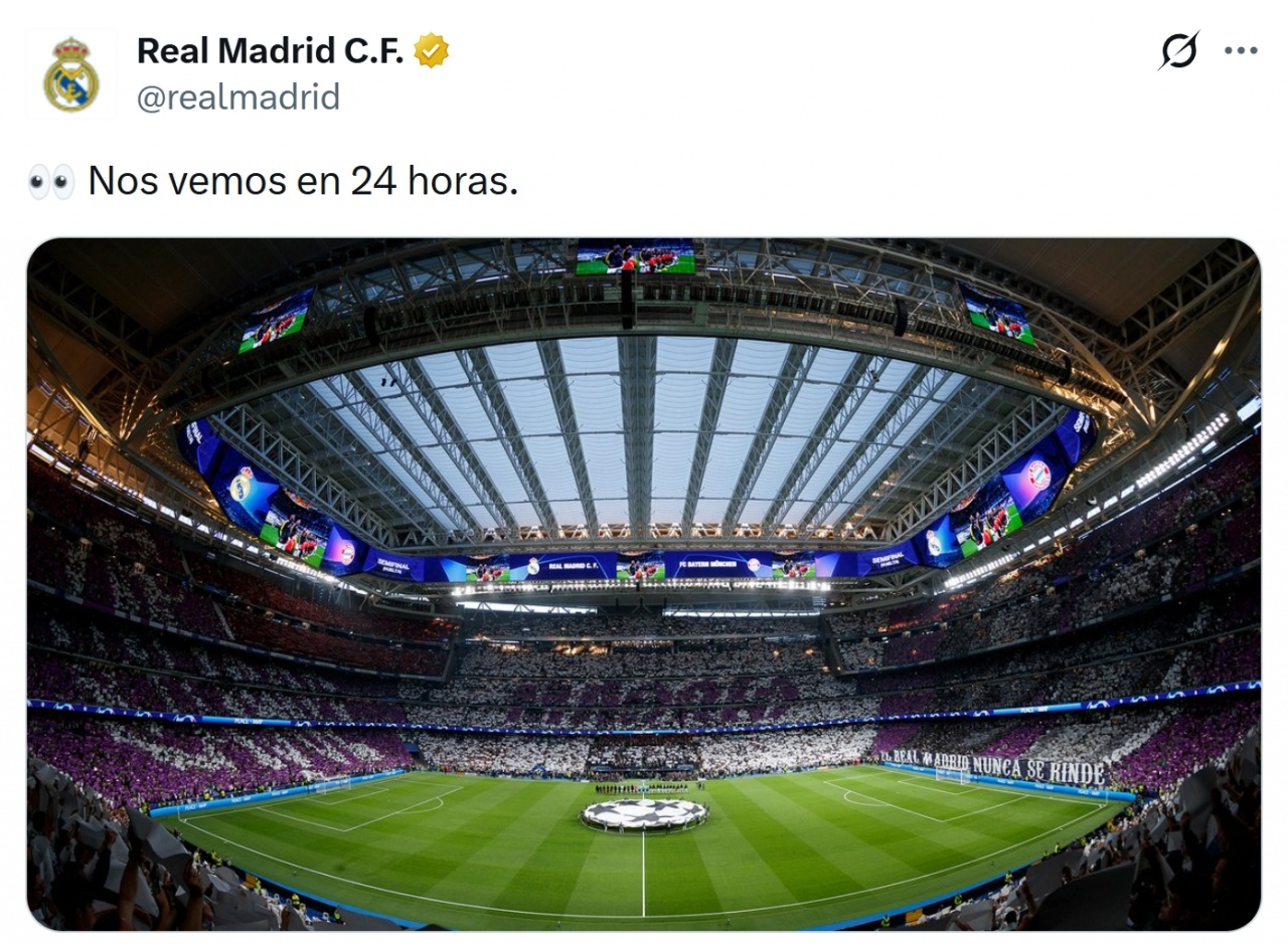 据悉,皇马一直倾向于在关键比赛中展示其翻新后的伯纳乌球场所配备的壮观可伸缩顶棚。今晚的欧冠四分之一决赛首回合对阵拜仁的比赛,将在屋顶关闭的情况下进行,尽管德国俱乐部已向欧足联表达了他们的不满,理由是封闭屋顶会产生声音效果和噪音带来的环境压力。