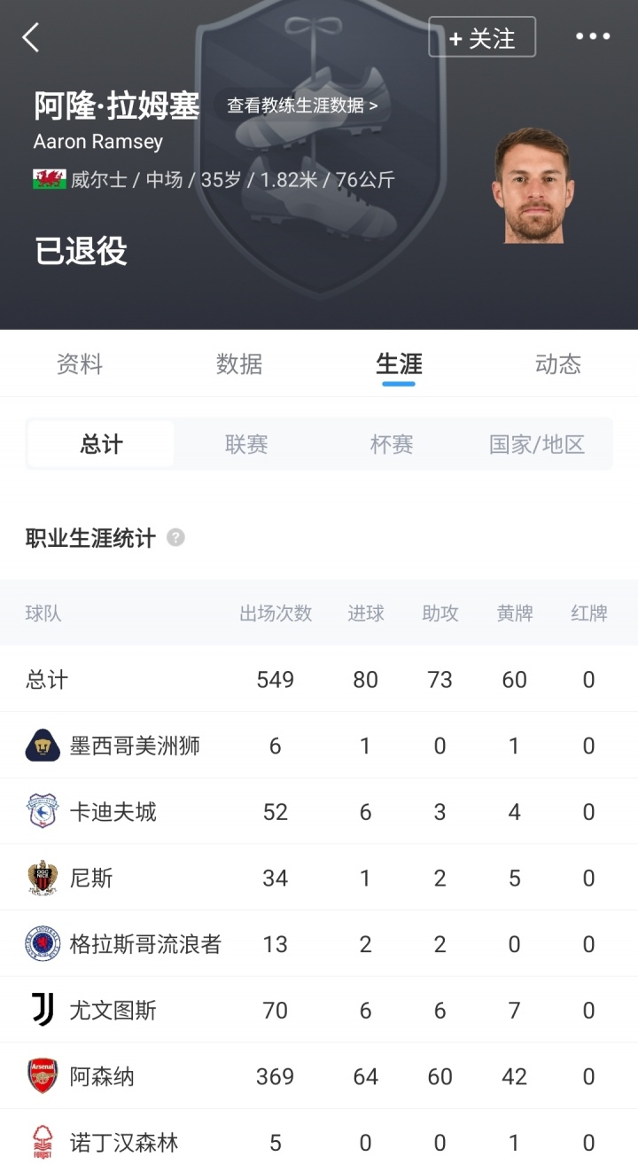 直播吧04月07日讯 35岁威尔士中场拉姆塞在社媒自宣退役,结束19年职业生涯。