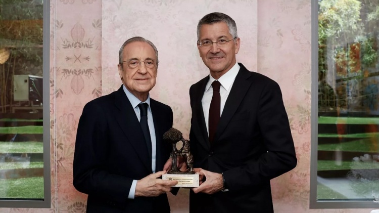 直播吧4月7日讯 皇马将在本轮欧冠八强战首回合主场迎战拜仁,皇马官方也晒出了两家俱乐部主席的合照。