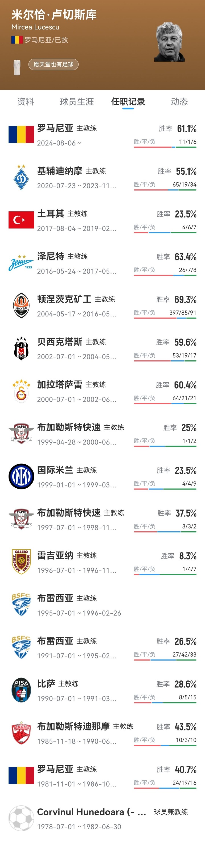 然而,他真正的天才光芒是在教练席上展现的。米尔恰·卢切斯库是将现代足球引入罗马尼亚的教练,他带领国家队打进1984年欧洲杯,并为伟大的科维努尔·胡内多阿拉队奠定了基础。他在国际赛场的成功、在欧洲赢得的奖杯、在土耳其加拉塔萨雷和贝西克塔斯的辉煌,以及在乌克兰顿涅茨克矿工的执教经历,使他跻身世界足坛最有成就的教练之列。
