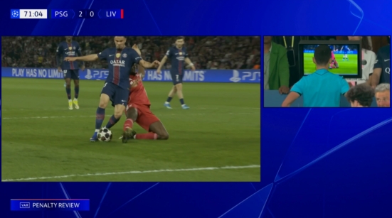 直播吧04月09日讯 巴黎vs利物浦第70分钟,科纳特身后铲倒埃梅里,裁判判罚点球。VAR介入,裁判观看回放后取消黄点判罚。