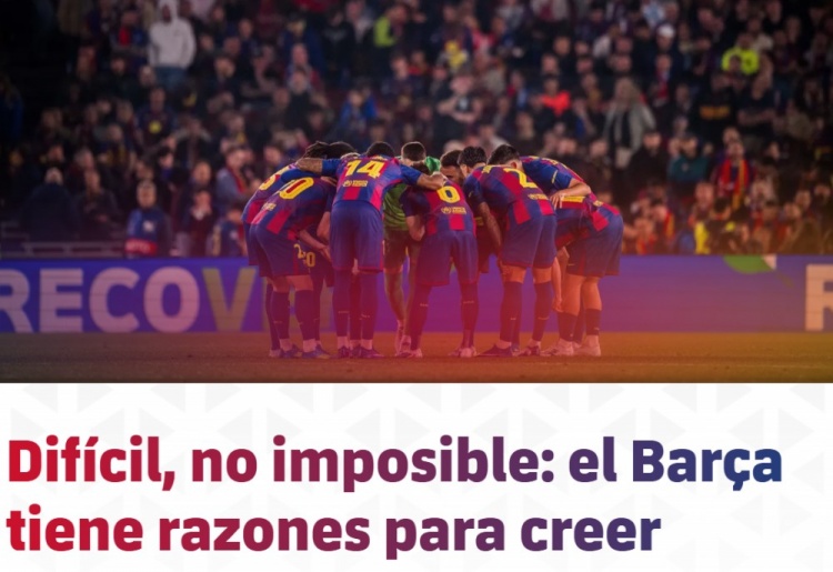 直播吧4月9日讯 欧冠1/4决赛首回合比赛,巴萨主场0-2不敌马竞。巴萨官网发表了一篇文章,认为球队想要逆转并非不可能,红蓝军团仍有理由相信晋级欧冠半决赛。