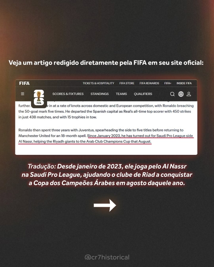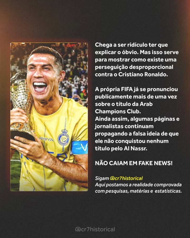近日,C罗球迷号@cr7historical发布内容澄清:“很多人向我询问阿拉冠的相关情况——也就是2023年C罗代表利雅得胜利征战的那项赛事。