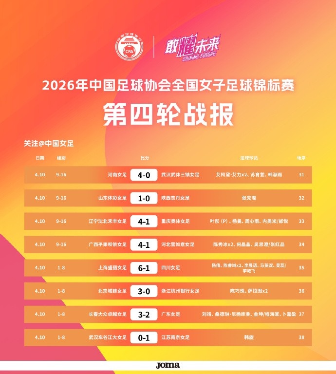 女锦赛排位赛第二轮(总轮次第五轮)将于4月12日继续进行。其中在1-4名排位赛(半决赛)中,上海女足将迎战北京女足,长春女足对阵江苏女足。