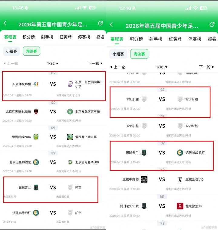 这两队所在B组里,如果是小组第1晋级,那么淘汰赛第一轮轮空直接晋级32强,但32进16要面对的是远晟16战狼红。如果是小组第2出线,那么需要先跟石景山金顶街二小踢1/32淘汰赛,然后还要和另外一场的胜者踢1/16淘汰赛(下图)。