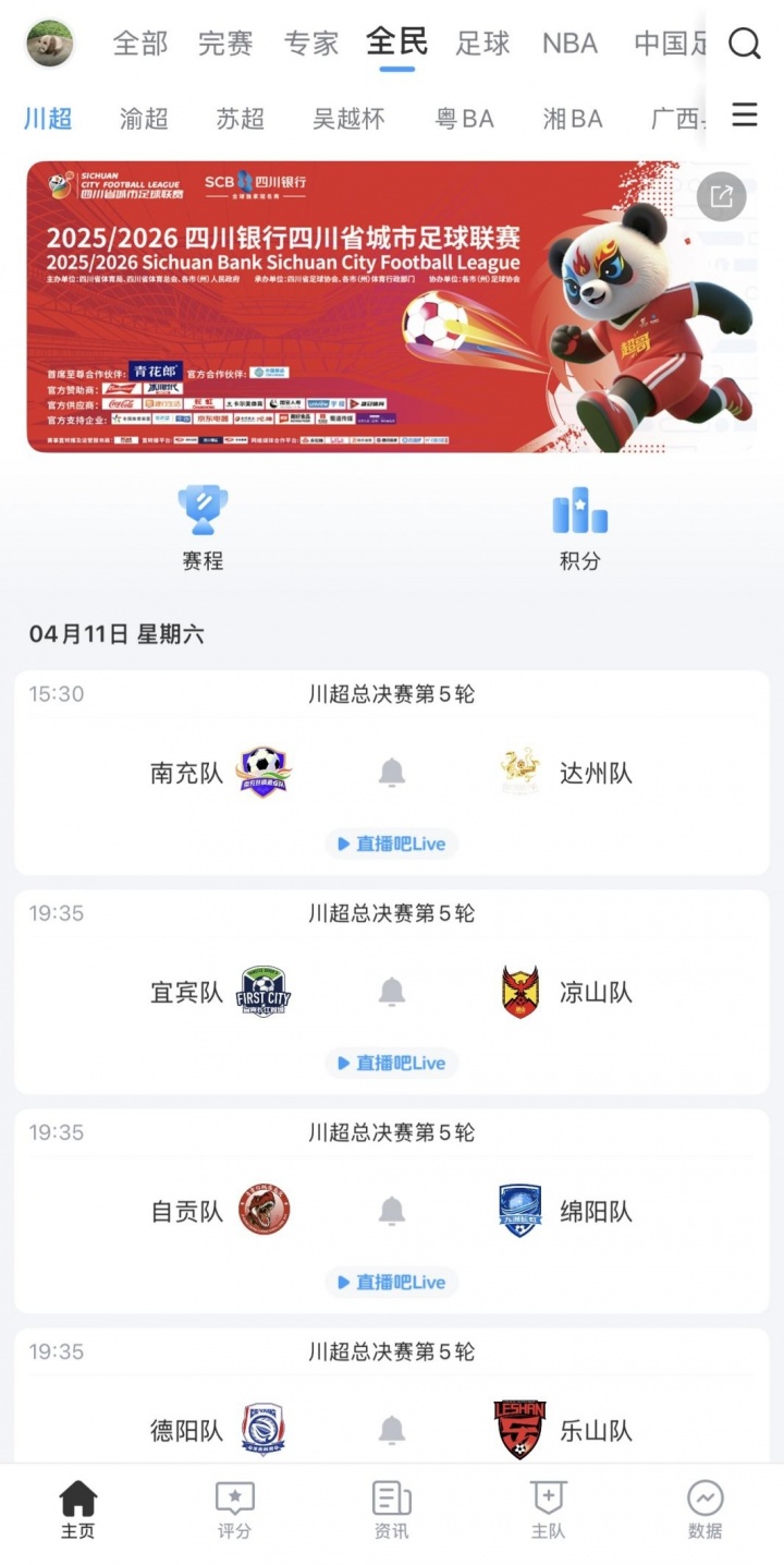 打开直播吧APP,搜索「川超」、「渝超」、「吴越杯」、「粤BA」,就能一键预约你想看的比赛!