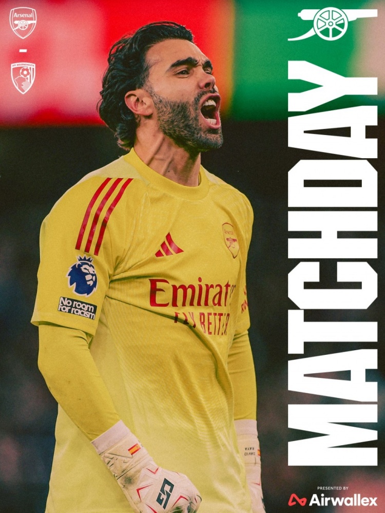 阿森纳官方社媒发布了为此役制作的海报,队内门将拉亚单人出镜。