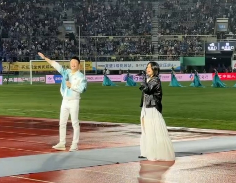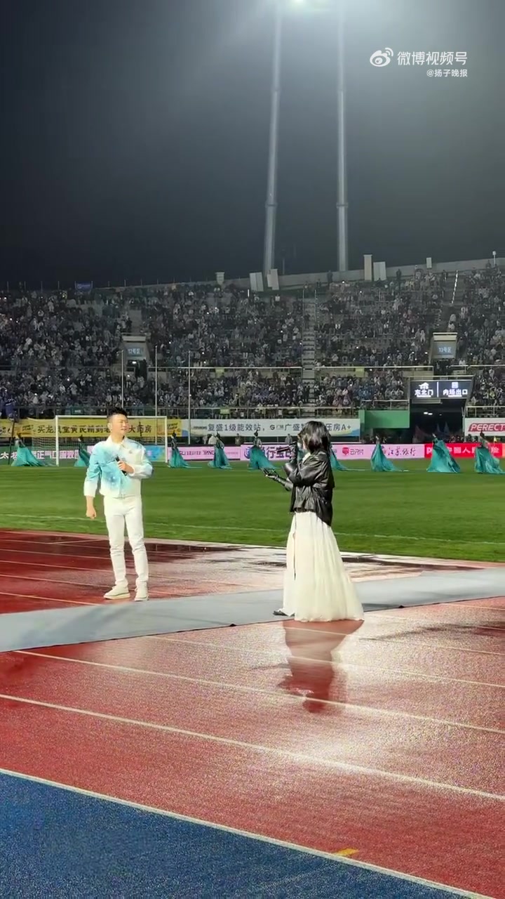 直播吧4月11日讯 据《新华日报》报道,4月11日晚,2026赛季江苏省城市足球联赛首轮比赛开始前,尚雯婕与汤非在扬州体育公园现场献唱扬州队队歌《马上成功》。