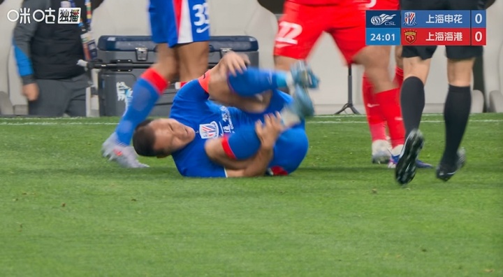 >第25分钟,吴曦被卢永涛放倒后痛苦打滚,裁判向卢永涛出示黄牌