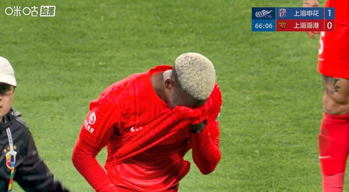 比赛第67分钟,克劳德疑似右大腿内侧拉伤无法坚持被换下,武磊替补登场。此外,刘若钒换下杨希。