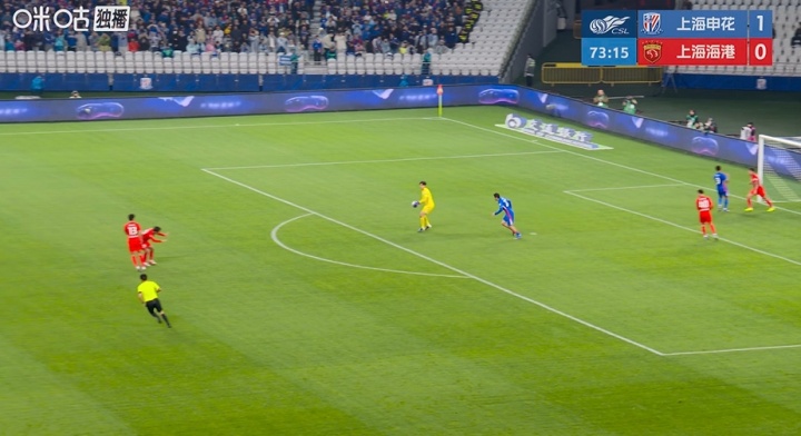 比赛第74分钟,海港后卫解围失败,拉唐获得半场大单刀机会,但射门被颜骏凌扑住。
