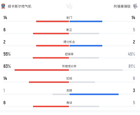 第94分钟,维尔梅林帮助纽卡斯尔喷气机1-1绝平对手
