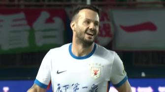 第14分钟,纳萨里奥左路直塞到禁区钟义浩小角度低射被王大雷没收。↓