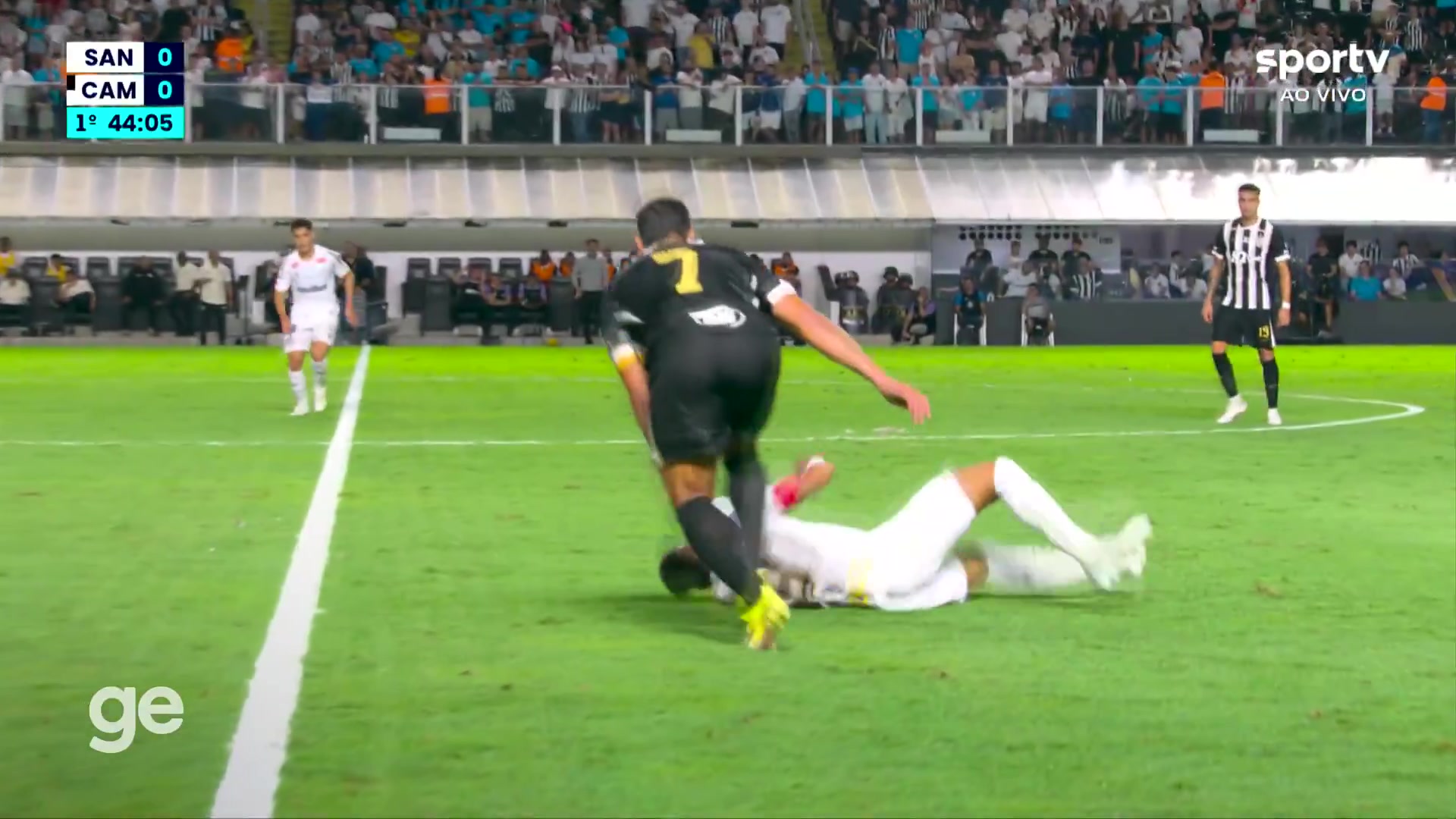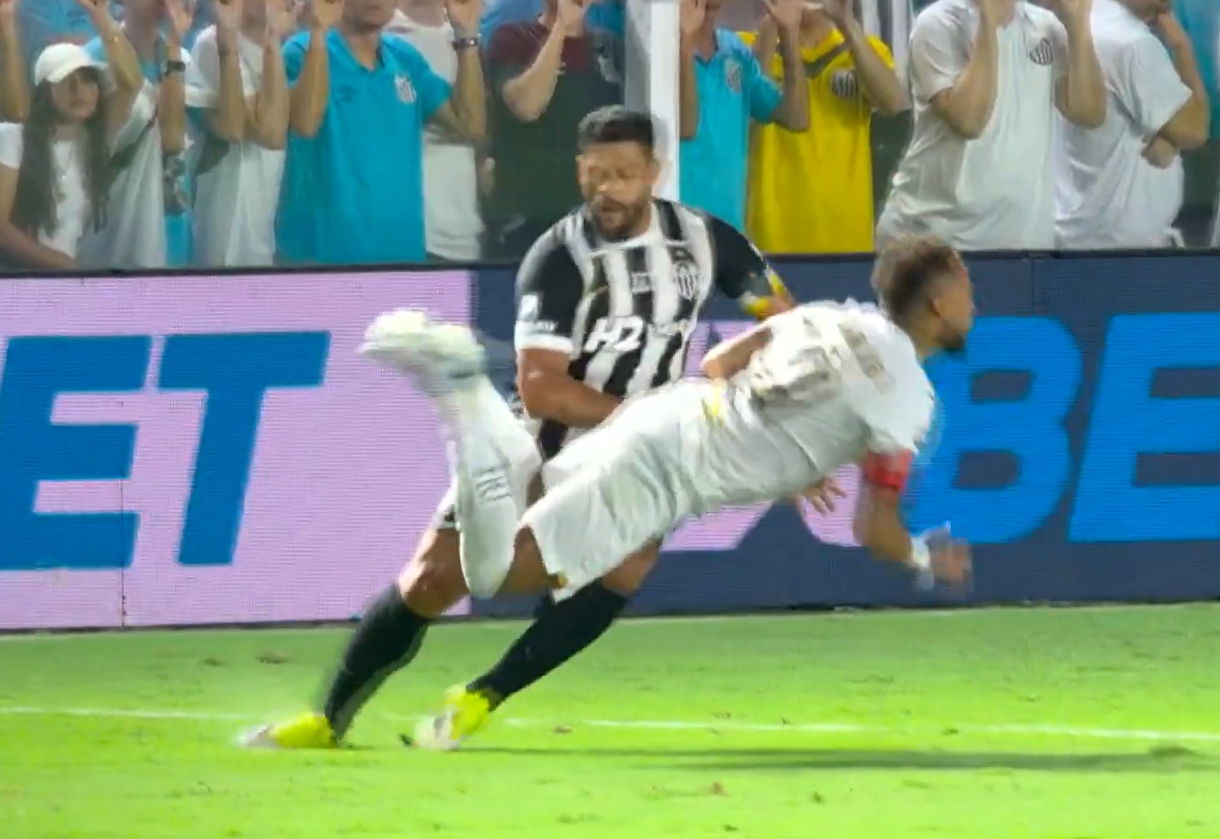 比赛上半场尾声阶段,内马尔试图中场摆脱胡尔克防守,结果被后者一脚踢翻,表情显得十分痛苦。胡尔克则赶紧伸手扶一把,表示关切。