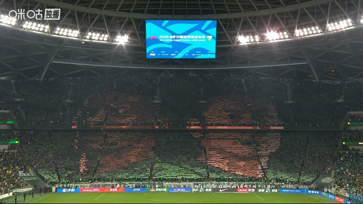 震撼!赛前国安球迷拼出巨型TIFO,展示法比奥+张玉宁头像
