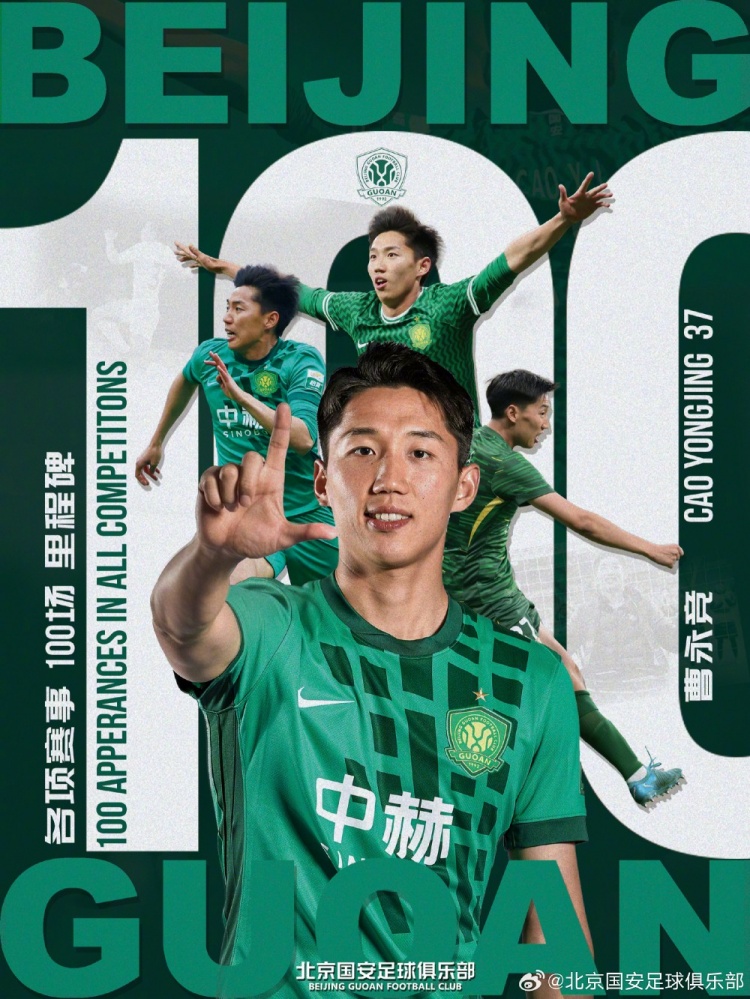 曹永竞替补登场,实现各项赛事代表北京国安第100次出场。
