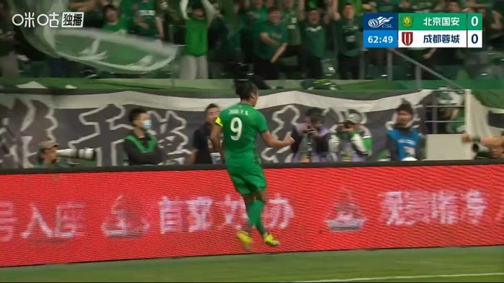 直播吧04月12日讯 中超第5轮,北京国安vs成都蓉城,比赛第63分钟,张玉宁替补建功,接曹永竞传中头球破门,国安1-0领先蓉城