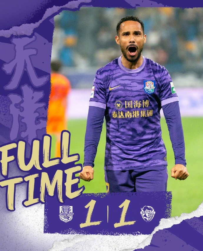 全场比赛结束,我们在最后时刻遗憾丢球,1:1战平青岛海牛