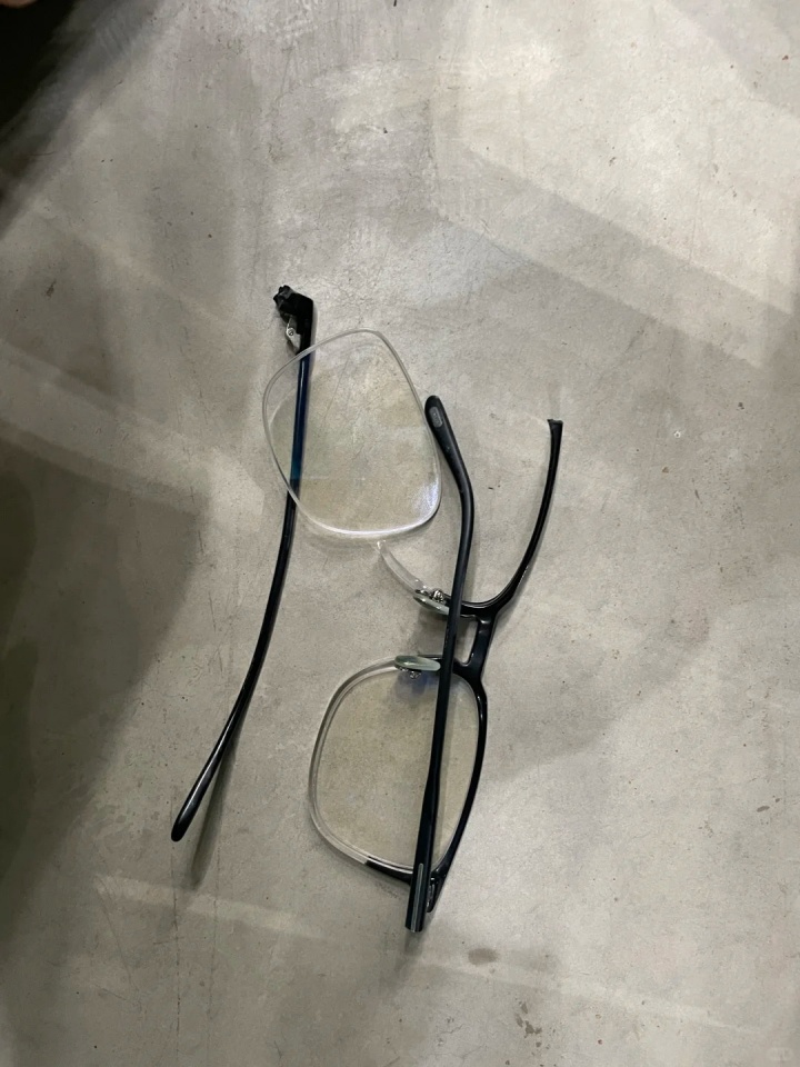 这位吧友也现身本条新闻评论区,并晒出了自己被砸坏的眼镜↓