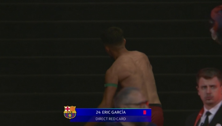 犯规染红!埃里克·加西亚离场后怒摔球衣