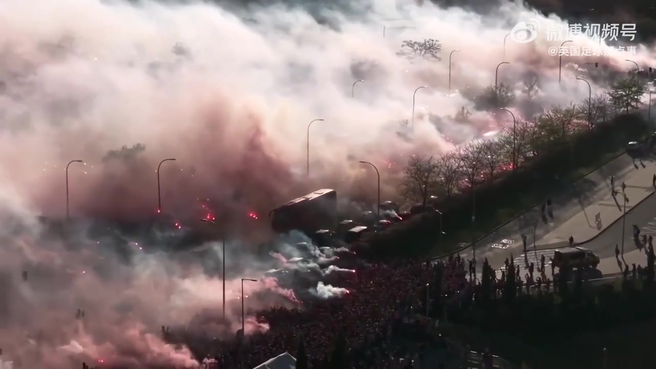 马竞大巴抵达体育场的画面....氛围太恐怖了