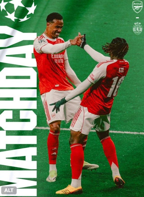力争晋级!阿森纳官方晒欧冠对葡体海报:加布里埃尔、埃泽出镜
