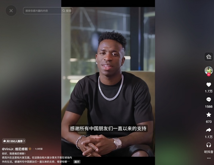 直播吧04月15日讯 维尼修斯在抖音发布视频,宣布正式入驻抖音平台,并表示将在该平台分享自己的日常生活。