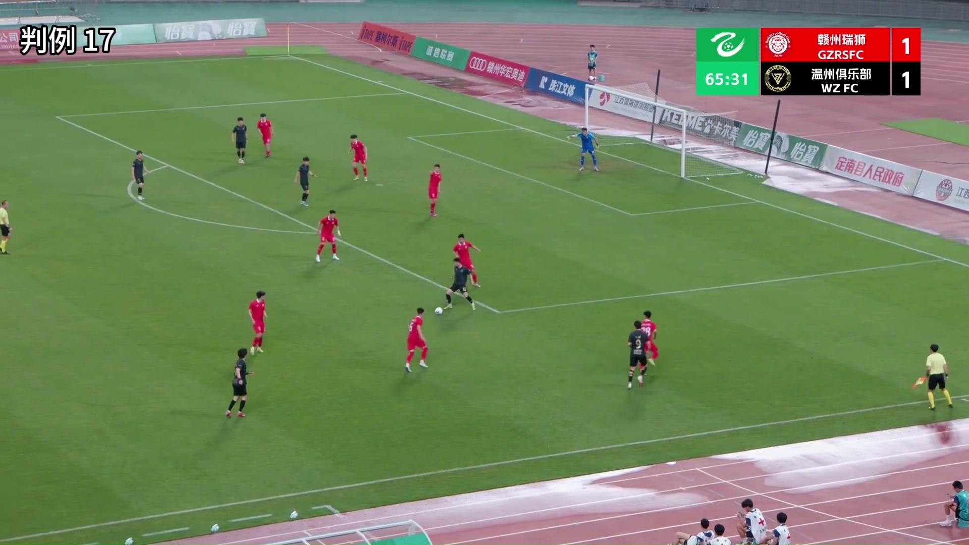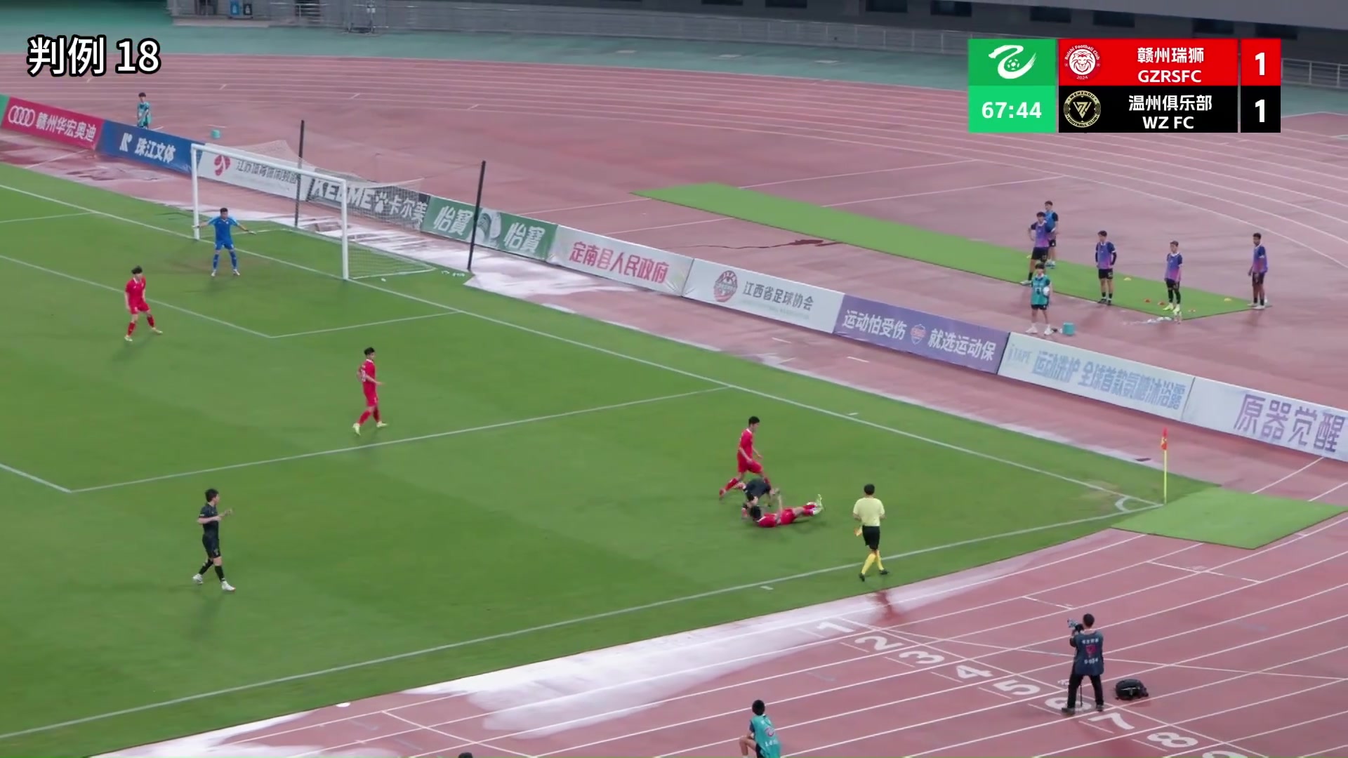 判例十七:中乙联赛第3轮,赣州瑞狮VS温州俱乐部。比赛第66分钟,在赣州瑞狮罚球区内,赣州瑞狮26号与温州俱乐部11号接触后,温州俱乐部11号倒地,裁判员未判罚犯规。