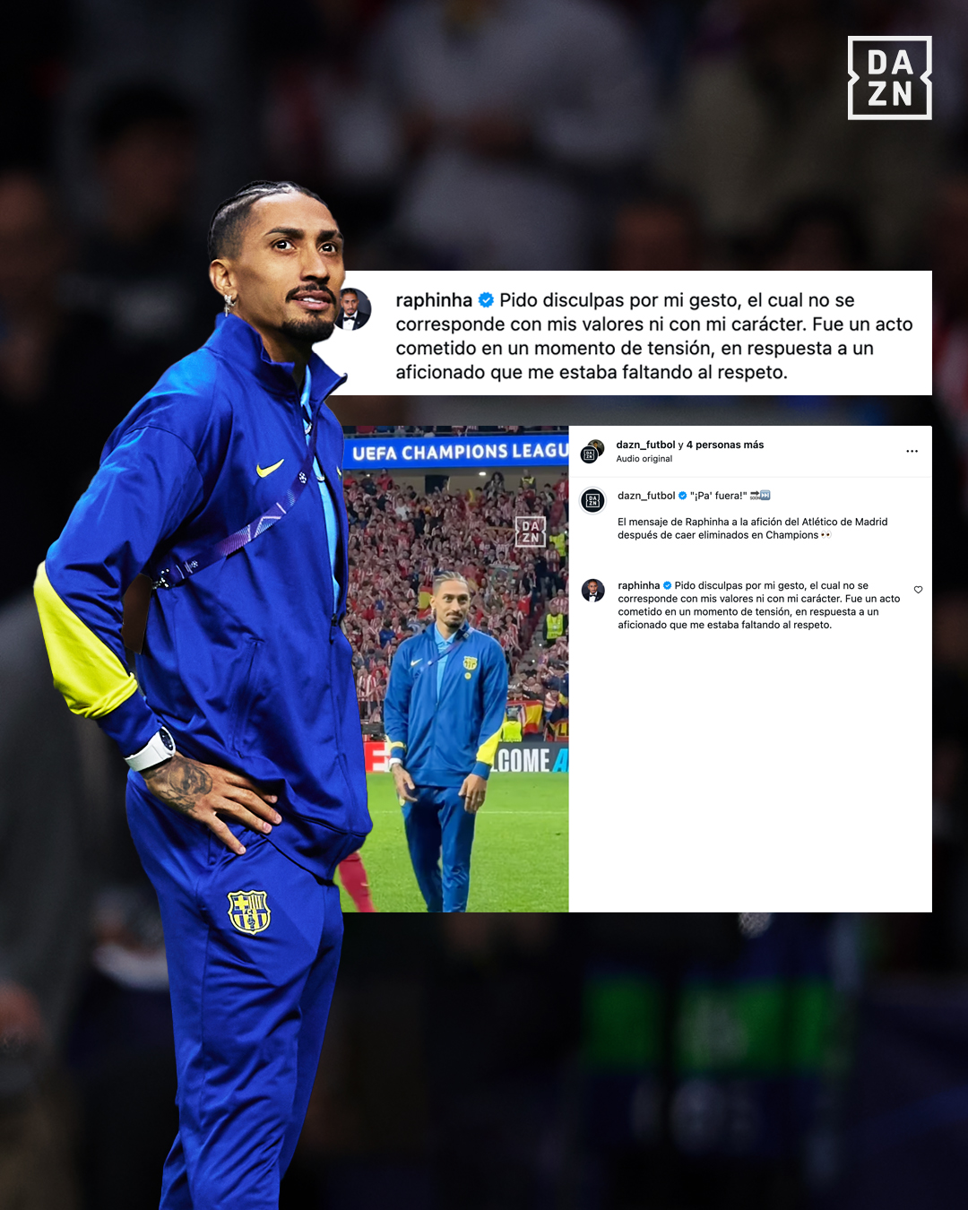 直播吧04月15日讯 欧冠1/4决赛次回合,巴萨2-1战胜马竞,但总比分2-3止步8强。赛后巴萨前锋拉菲尼亚对马竞球迷放话“你们下轮就回家”,拉菲尼亚随后进行了道歉。