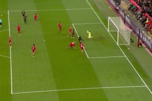 第57分钟,萨拉赫前场右路挑传到禁区左侧,凯尔凯兹包抄小角度迎球推射,球稍稍偏出远侧立柱!↓