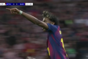 第4分钟,马竞后场送礼,朗格莱回传被断,费兰得球直塞,亚马尔单刀球突入禁区低射攻破穆索十指关,巴萨1-0马竞。↓