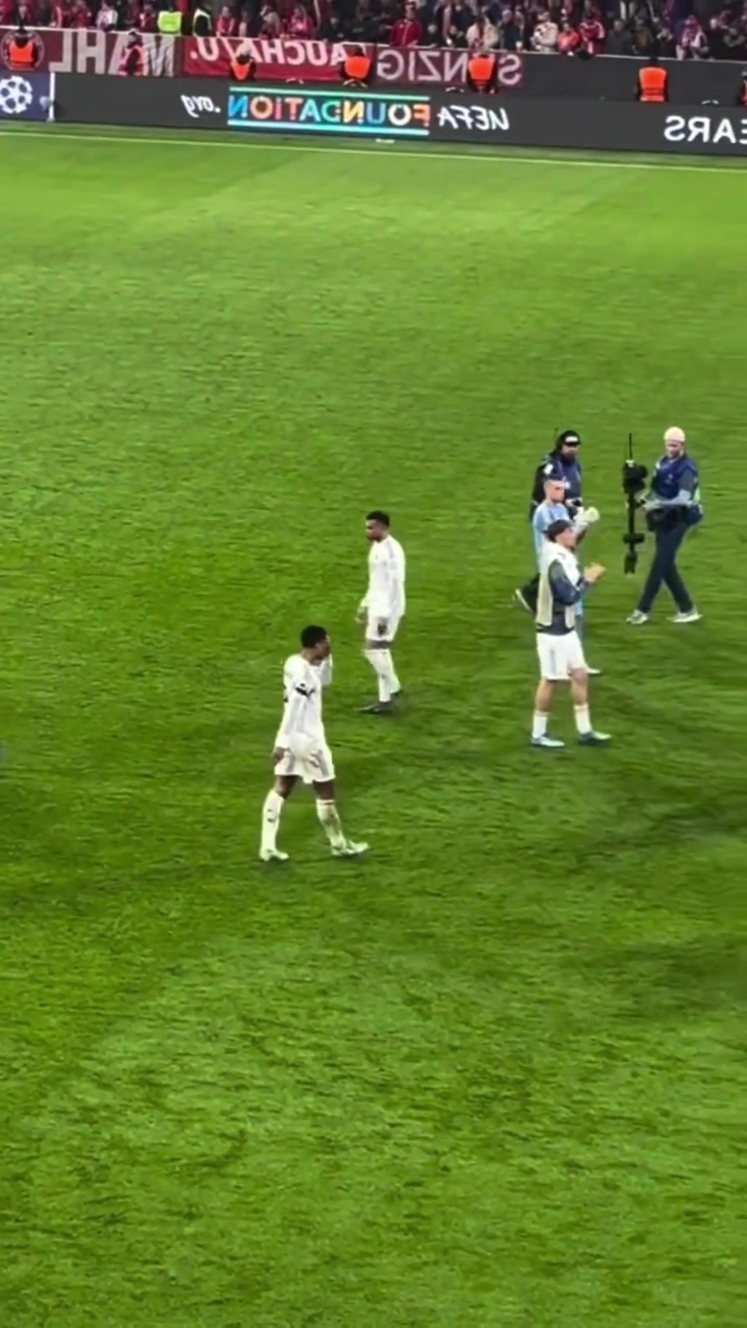 比赛结束后维尼修斯、姆巴佩、巴尔韦德等皇马球员也在安联球场向自己球迷看台鼓掌致意。