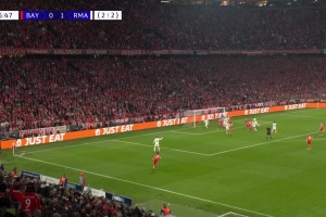 居莱尔任意球破门+梅开二度!第30分钟,皇马获得任意球机会,居莱尔主罚射门划出弧线直飞死角,诺伊尔扑救没能阻挡皮球入网,拜仁1-2皇马!总比分拜仁3-3皇马!↓