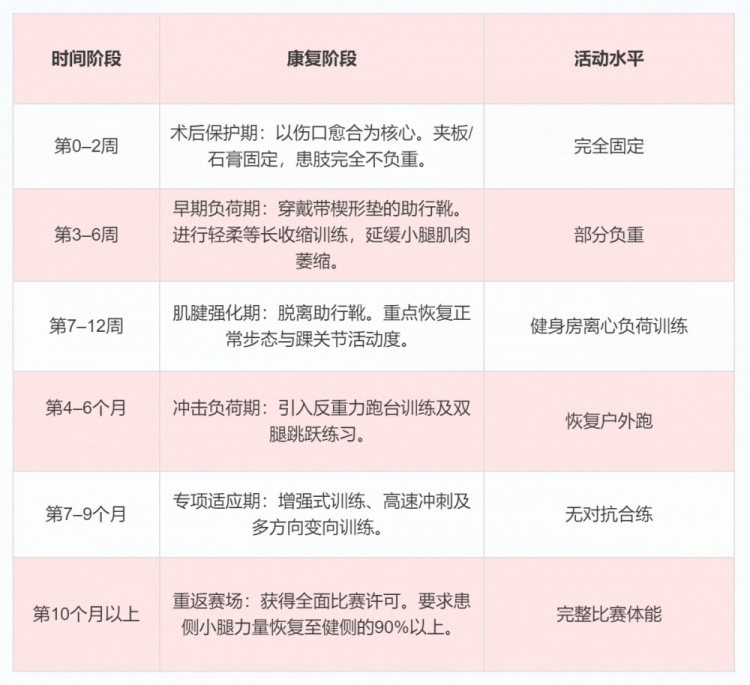 尽管大多数球员在跟腱手术的个月后,就能恢复跑步,但要让一名球员敢于在激烈的1对1对抗中充分信任自己的小腿,通常需要整整12个月的时间。
